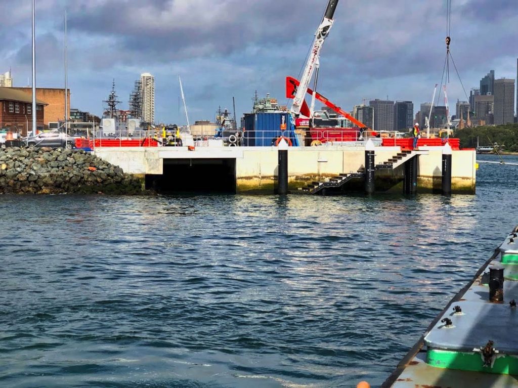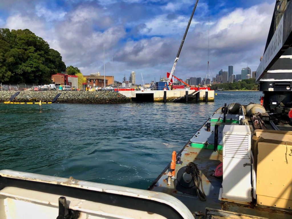 TOBCO has now installed a new sewer, water, and electrical conduit line nearly 550m from Garden Island to Fort Denison, all three of which are resting safely below a bed of 60 * 3T concrete mattresses that have been sunk to provide protection from ships and anchors.