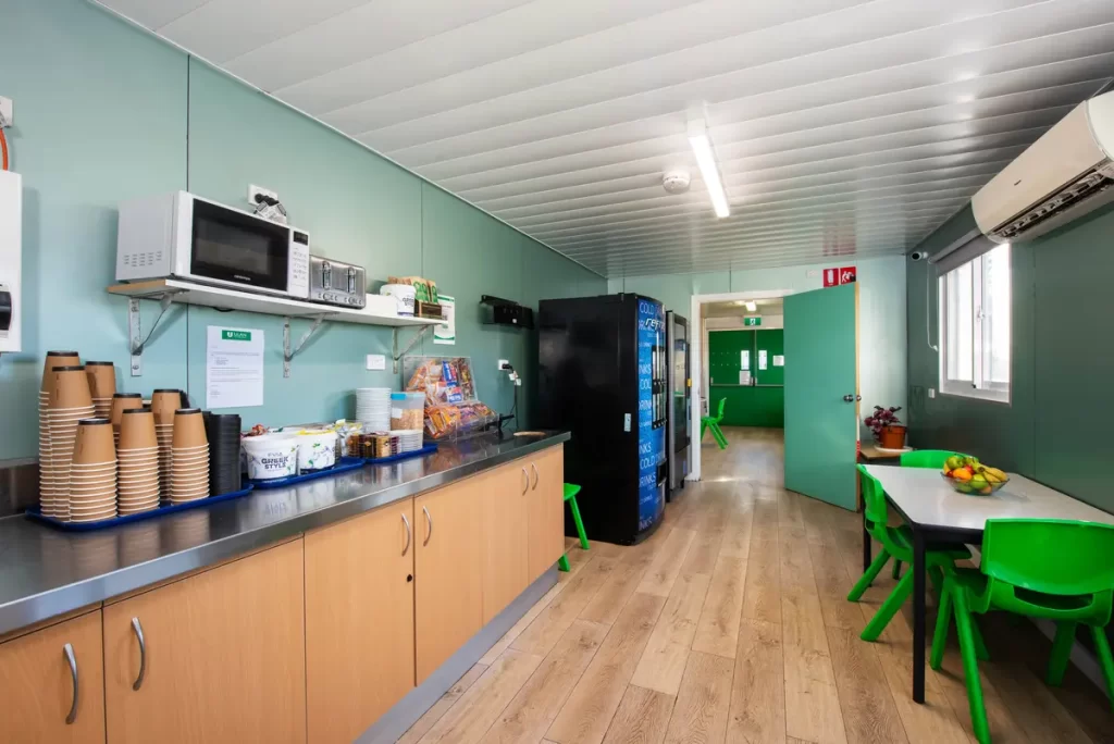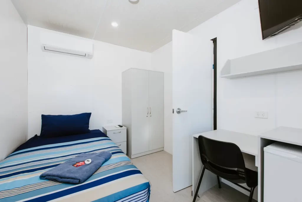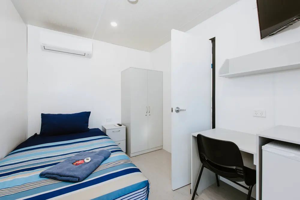 Private Rooms: TOBCO constructed 200 private rooms, each featuring an ensuite bathroom. These rooms are designed to offer privacy and comfort, catering to the specific needs of remote workers. Each building had awnings, walkways and stair and disabled access.
